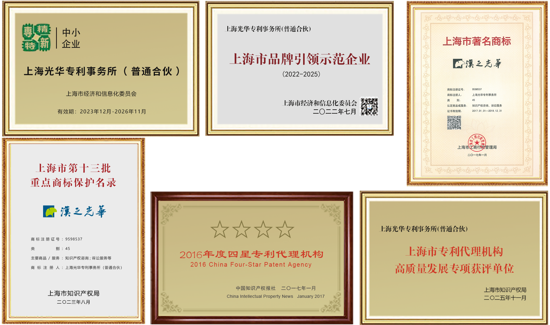 漢之光華 是中國著名的知識(shí)產(chǎn)權(quán)服務(wù)品牌之一,中華全國專利代理人行業(yè)協(xié)會(huì)理事單位,2014年國家知識(shí)產(chǎn)權(quán)局認(rèn)定的知識(shí)產(chǎn)權(quán)評議機(jī)構(gòu),2016年上海市著名商標(biāo)單位,2017年全國四星專利代理機(jī)構(gòu),2021年上海市品牌引領(lǐng)示范企業(yè),2022年上海好商標(biāo)、上海知識(shí)產(chǎn)權(quán)局認(rèn)定為上海市知識(shí)產(chǎn)權(quán)信息公共服務(wù)網(wǎng)點(diǎn),2023年通過ISO9001國際質(zhì)量管理體系認(rèn)證、上海市重點(diǎn)商標(biāo)保護(hù)名錄、上海市專精特新中小企業(yè),2024年中國杰出知識(shí)產(chǎn)權(quán)服務(wù)團(tuán)隊(duì),2025年上海市專利代理機(jī)構(gòu)高質(zhì)量發(fā)展專項(xiàng)獲評單位,經(jīng)信委多年認(rèn)定的上海市中小企業(yè)服務(wù)機(jī)構(gòu)。 漢之光華由上海光華專利事務(wù)所、上海光知華律師事務(wù)所、上海漢知寶信息科技有限公司和上海漢之光華數(shù)據(jù)科技有限公司組成。