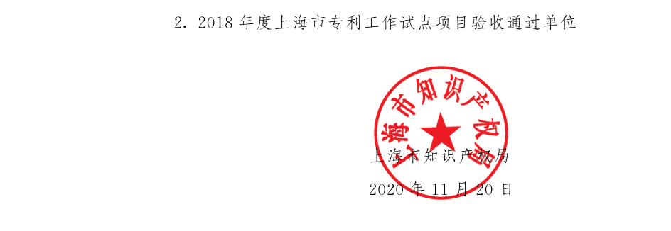 2018年度上海市專利工作試點(diǎn)項(xiàng)目驗(yàn)收通過單位