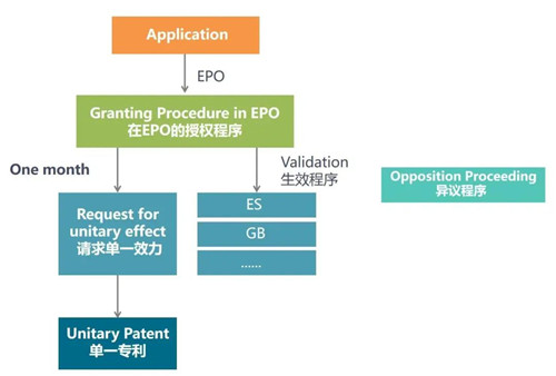 統(tǒng)一專利申請?jiān)趯@暾埖奶峤弧彶楹褪跈?quán)方面與經(jīng)典歐洲專利申請完全一致。二者的主要區(qū)別在于授權(quán)后的登記程序。統(tǒng)一專利需要在歐洲專利公報(bào)中提及授予歐洲專利后一個(gè)月內(nèi)提交請求。
