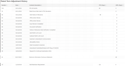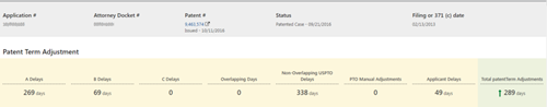 C類延遲:此申請沒有爭議(interferences)、保密審查(secrecy orders)或上訴(appeals)程序,因此C類延遲為0天。