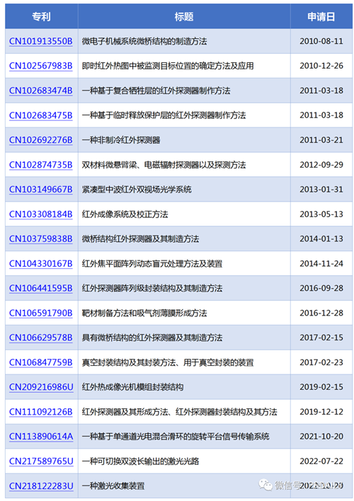 為了研究我國非制冷型民用紅外探測器技術的發展路徑,我們可以通過厘清這三家公司的專利技術演進,從而得到該技術在我國的發展歷程。