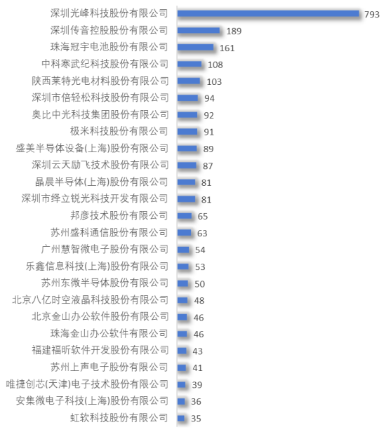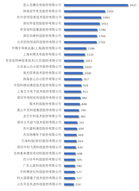 圖 1 專利申請量前30企業分布圖(來源:商用數據庫,光華所整理發布)