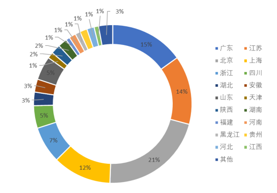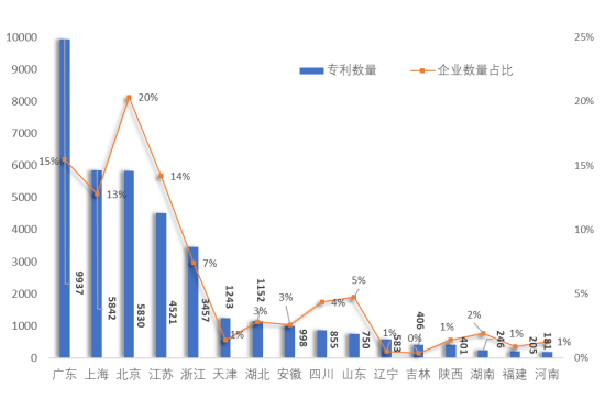 圖 3 省/直轄市專利申請總量及企業數量占比分布圖(來源:商用數據庫,光華所整理發布)
