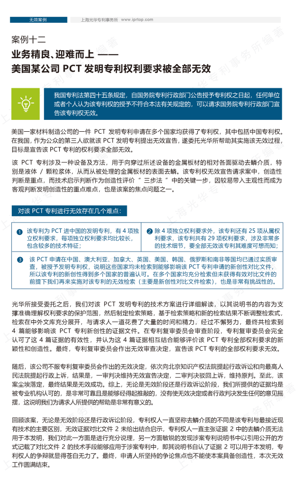 恰逢上海光華專利事務所成立20周年,光華所從代理的眾多案例中精心選編了25個具有代表性的國內外經典案例,編撰成《上海光華專利事務所經典案例選編》,以期為知識產權保護的創新與發展提供參考。