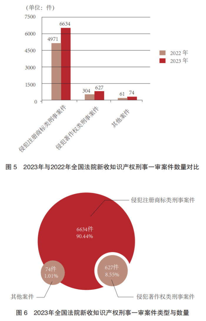 全國法院新收侵犯知識產(chǎn)權(quán)刑事一審案件7335件,審結(jié)6967件,比2022年分別上升37.46%和27.69%。