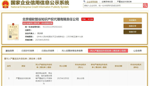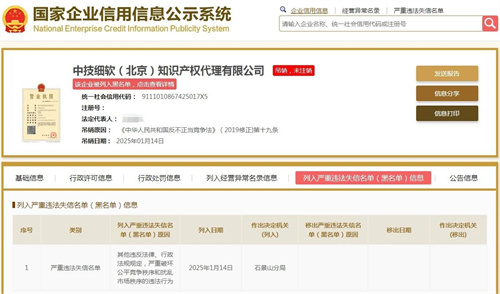 某知識(shí)產(chǎn)權(quán)平臺(tái)因行賄商標(biāo)審查人員,旗下兩家關(guān)聯(lián)公司分別于2025年1月9日和1月14日被吊銷執(zhí)照,直接被列入嚴(yán)重違法失信名單。