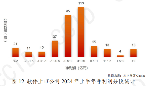 根據賽迪發布《我國軟件上市公司2024年半年報簡析》來看,2024年上半年,軟件上市公司利潤增長欠佳,上半年合計6.90億元,同比下跌91.62%。統計的354家公司中,實現盈利178家,錄得虧損176家。