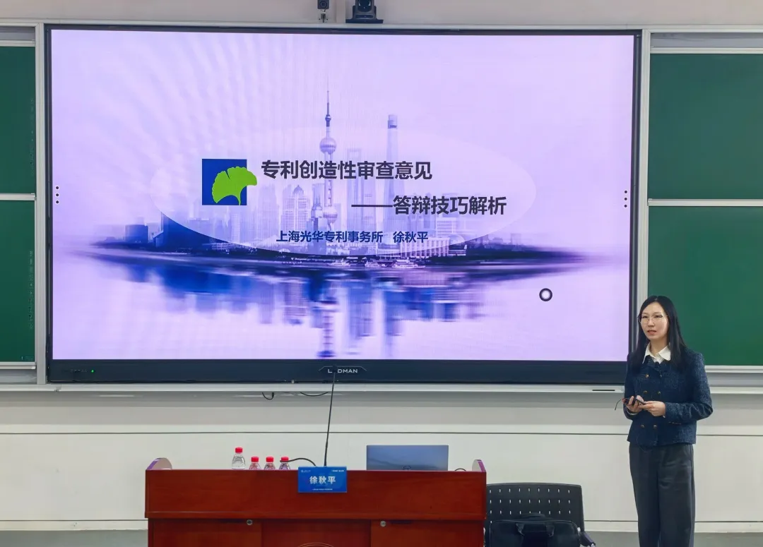 4月23日,光華所高級合伙人徐秋平在上海交通大學知識產權系列培訓中,開展了“專利創造性審查意見的答辯技巧解析”主題分享。徐秋平老師通過不同案例,詳細講解了在具體情境下如何運用不同的策略應對專利創造性審查意見,與會人員紛紛表示受益匪淺。